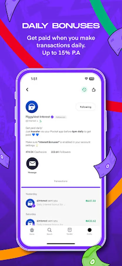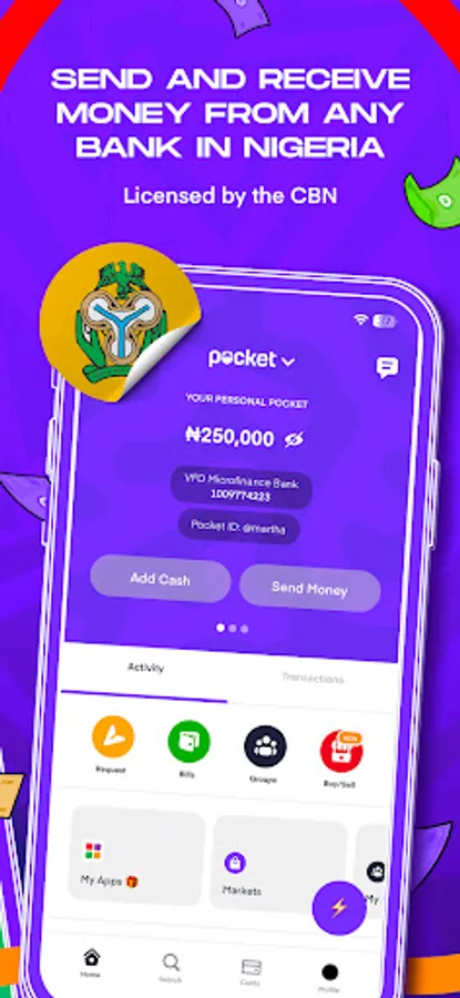 PocketApp by Piggyvest is a Mobile Money Operator (MMO) licensed by the CBN as Abeg Technologies for Sending, Receiving and Managing Money. All funds are insured by the NDIC.