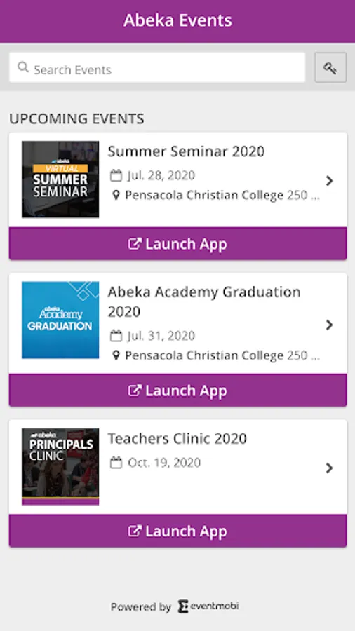 Stay up to date on all the necessary information for upcoming Abeka events. Inside the app, you'll find a schedule of events, a campus map, safety information, where to shop and eat, and much more! Abeka Events is a must-have app for finding your way around campus and being sure you don't miss any scheduled activities.