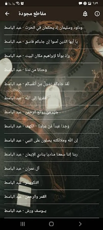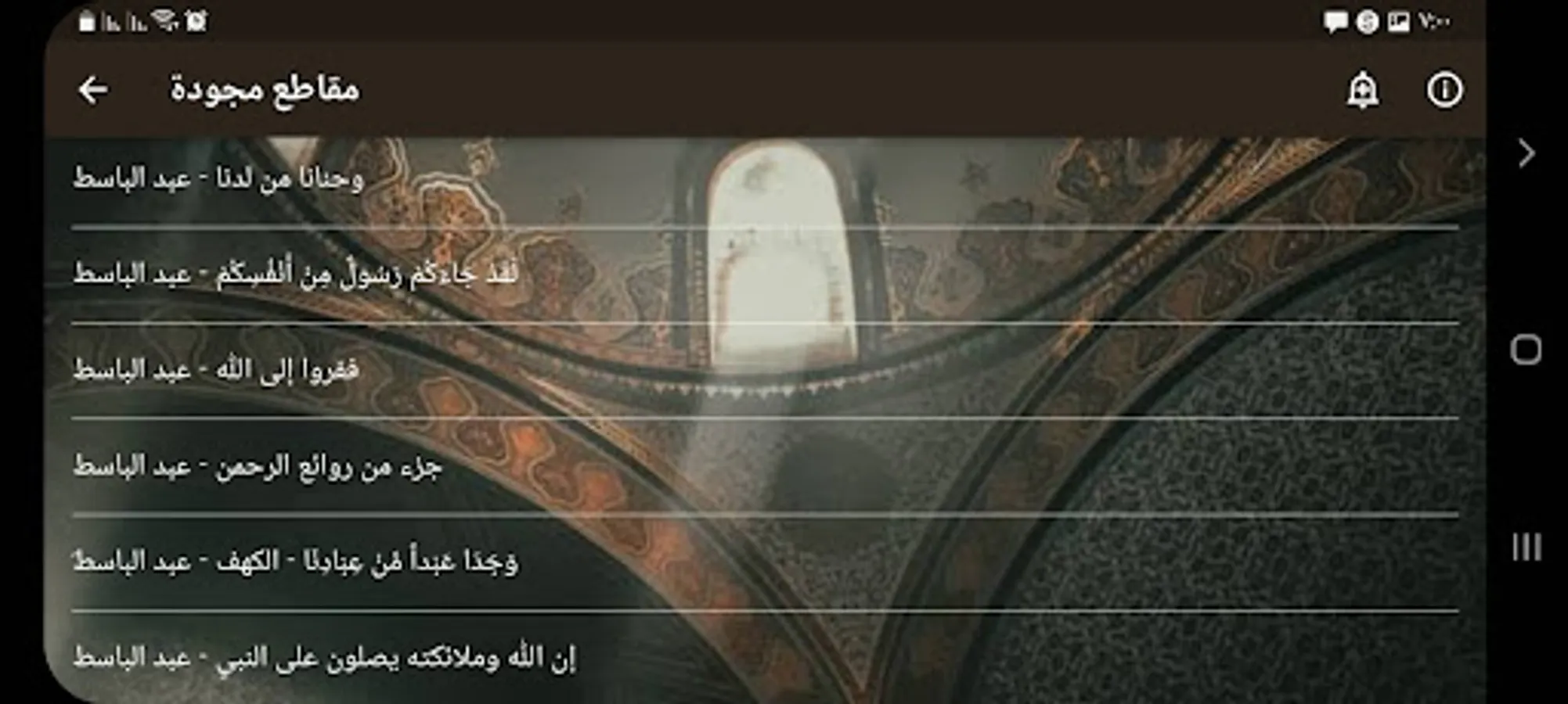 The Abdul Basit Abdul Samad application without the net contains clips from the Holy Quran and the recited in addition to external concerts and rare recordings for all lovers of the voice of Sheikh Abdul Basit Muhammad Abdul Samad, may God have mercy on him.
