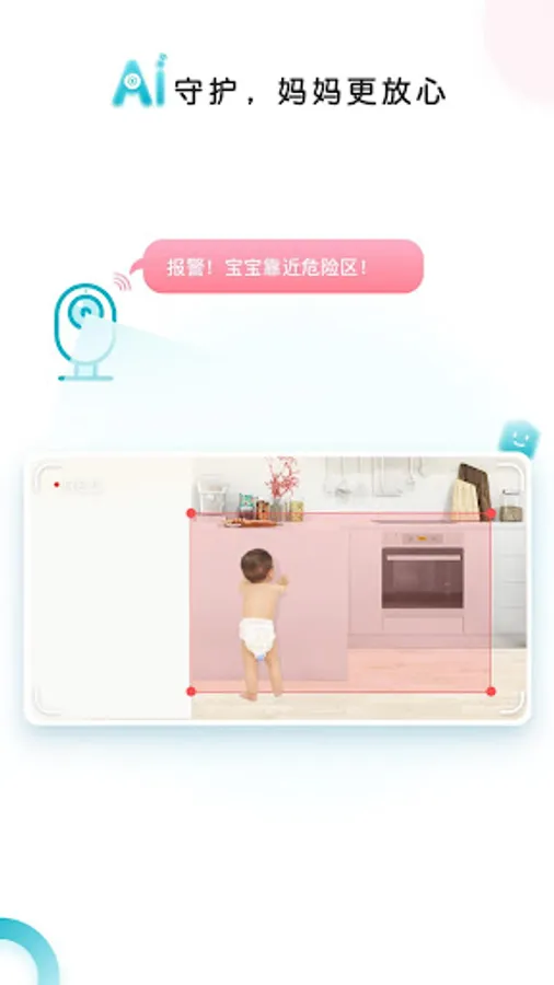 Through the APP to open the AI intelligent guardian baby mode, AI uses big data to learn and analyze the baby's safety situation on the spot, and promptly warns of dangers, so that the baby is safe and the mother is at ease.