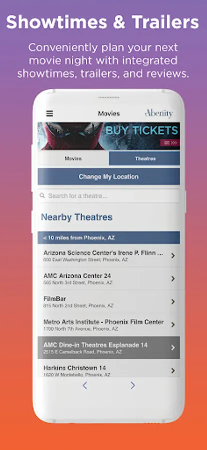 Conveniently plan your next movie night with integrated showtimes and digital eTickets on demand.