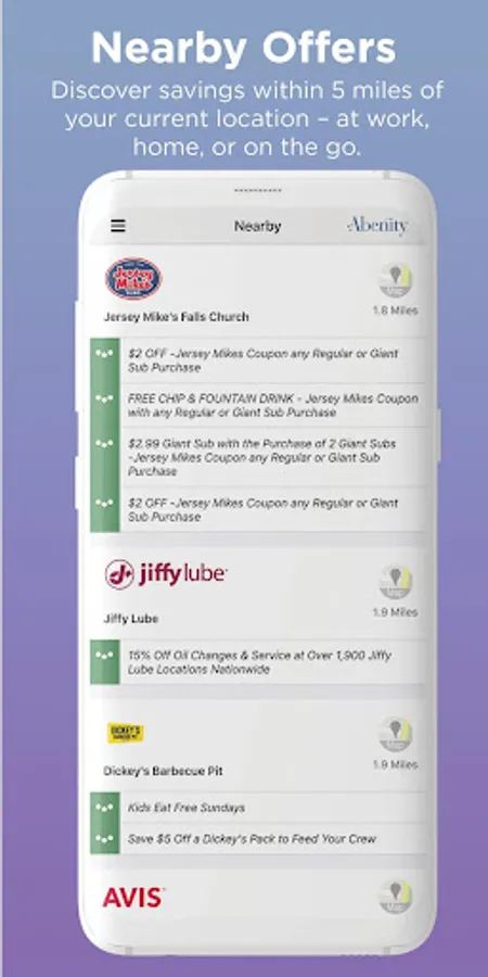 Discover offers within 10 miles of your current location using geo-aware technology.