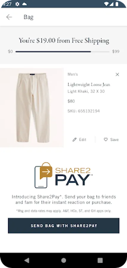 SCAN TO SHIP: Don't have your size in store? Scan an item using the app and have it shipped free to your store. Just select Pick Up in Store in Checkout.