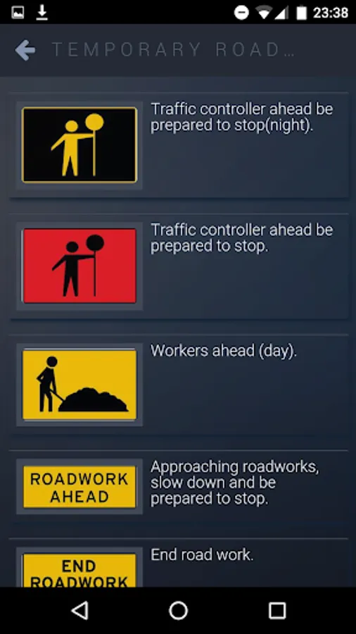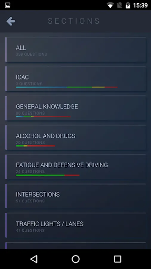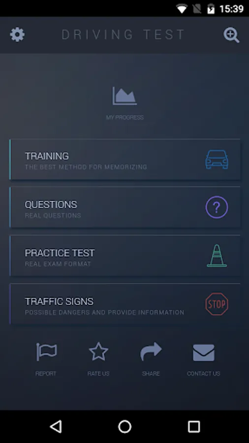 In addition to the training exercises – the application shows the graph of your training progress and grants you access to all of the questions that appear on the Australian RTAs Drivers Knowledge Test (DKT), divided into categories, road signs, simulations of the actual DKT test format and the option to work on your errors.