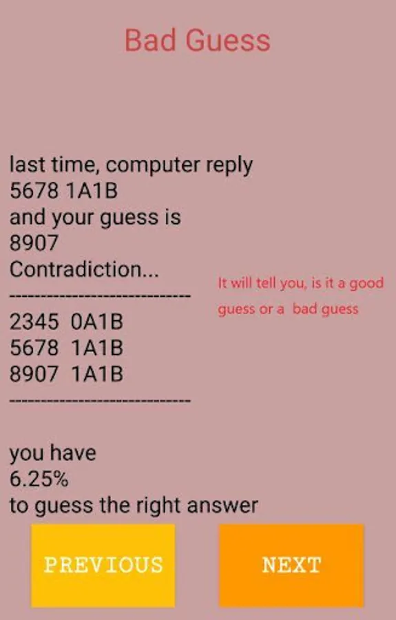This is a guessing game, It has AI to help you analyze your guesses and make you a master of guessing numbers, You can also challenge the AI to let him guess the number you think.