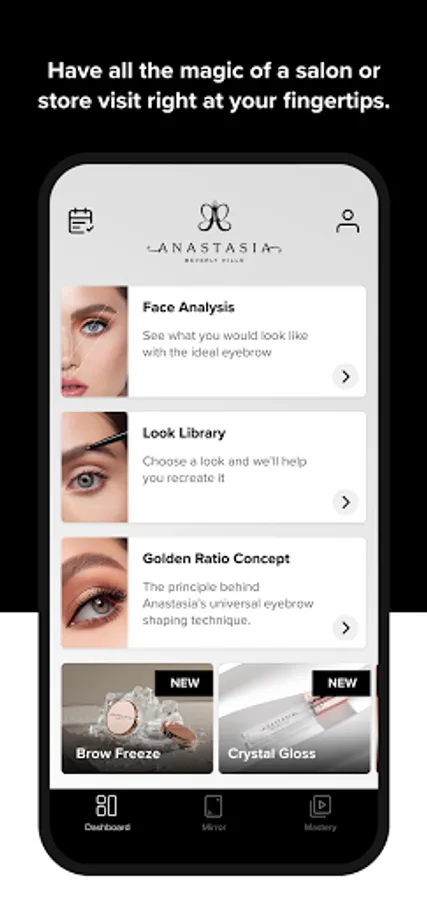 The app allows you to have all the magic of a salon or store visit in the palm of your hands. By using Anastasia's Golden Ratio® Method you can be guided to create your personalised beauty look every single day and night.