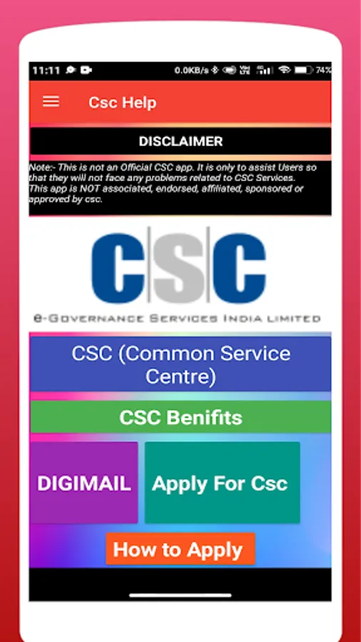 This is an App exclusively for new csc (VLE) for reportinsg various activities undertaken at Common Service Centres (CSC) across India as a part of Digital India program.