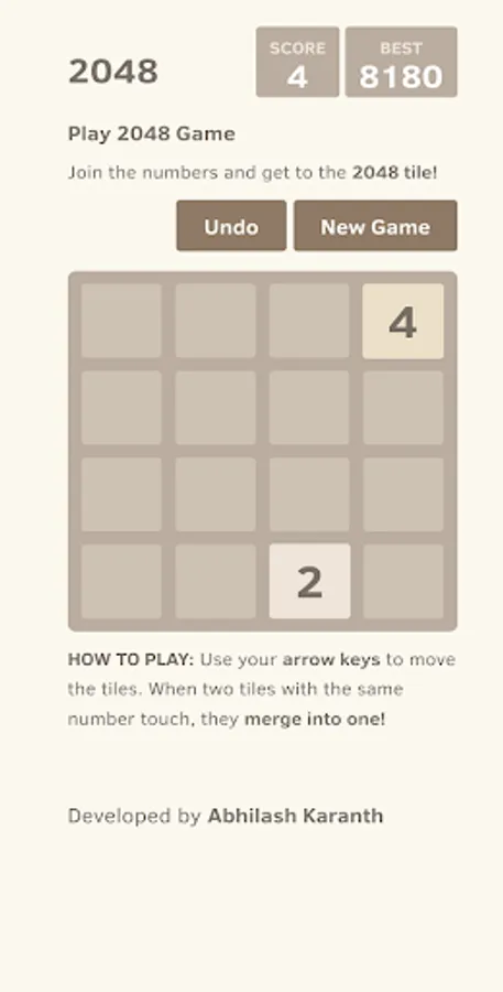 2048 is an easy and fun puzzle game. Even if you don't love numbers you will love this game.