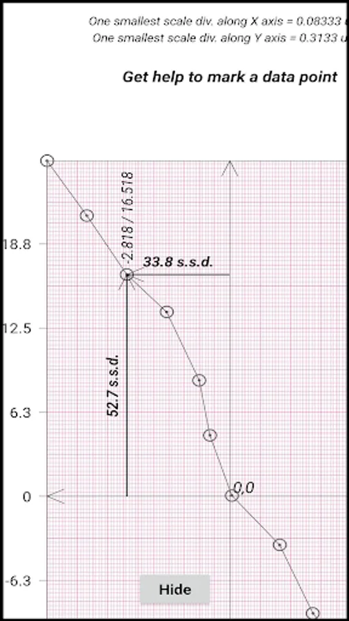 You may learn how to calculate smallest scale divisions for a graph grid. You may get guidance on how to mark a data point on a graph grid. You may perform additional tasks like evaluating a function of known values obtained from experiment. You may do all this and more using a simple and very friendly user-interface.