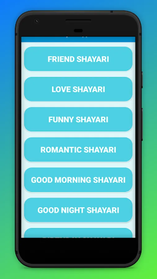 This app contains following category like Best wishes Shayari, Friend Shayari,Love shayari, funny shayari, Romantic Shayari, Good Morning Shayari, Good night Shayari, Birthday Shayari etc.