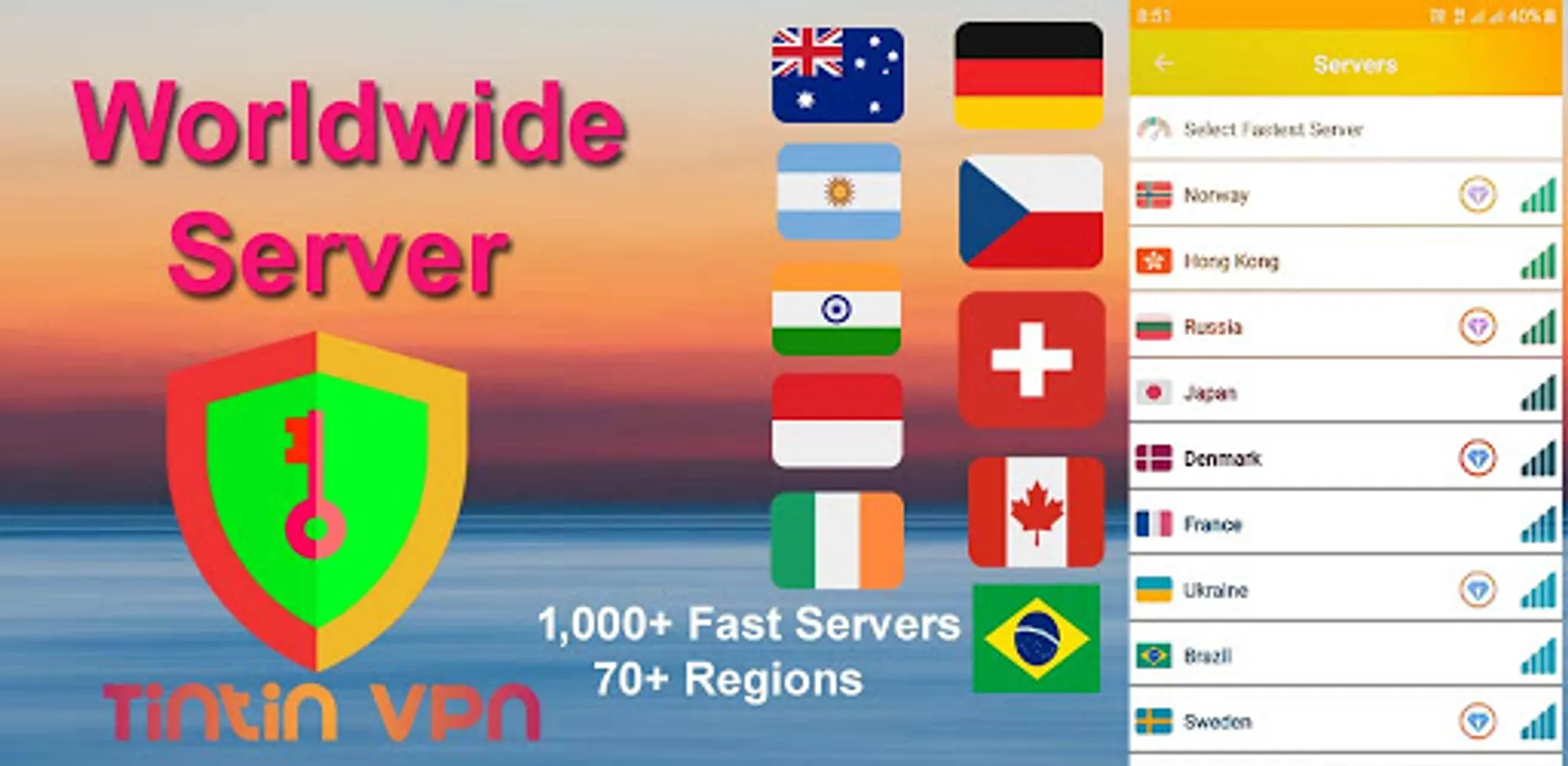 Tintin VPN-Unlimited worldwide servers, privacy protection and fix internet problem