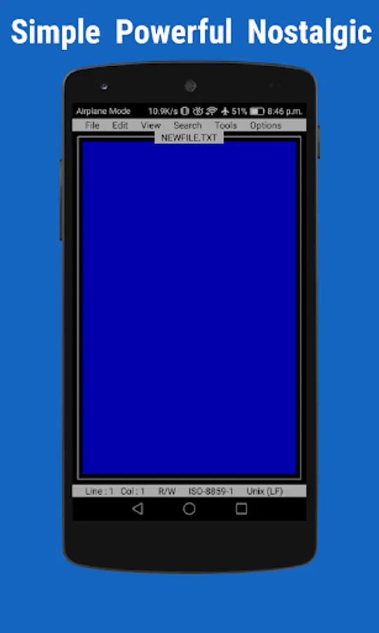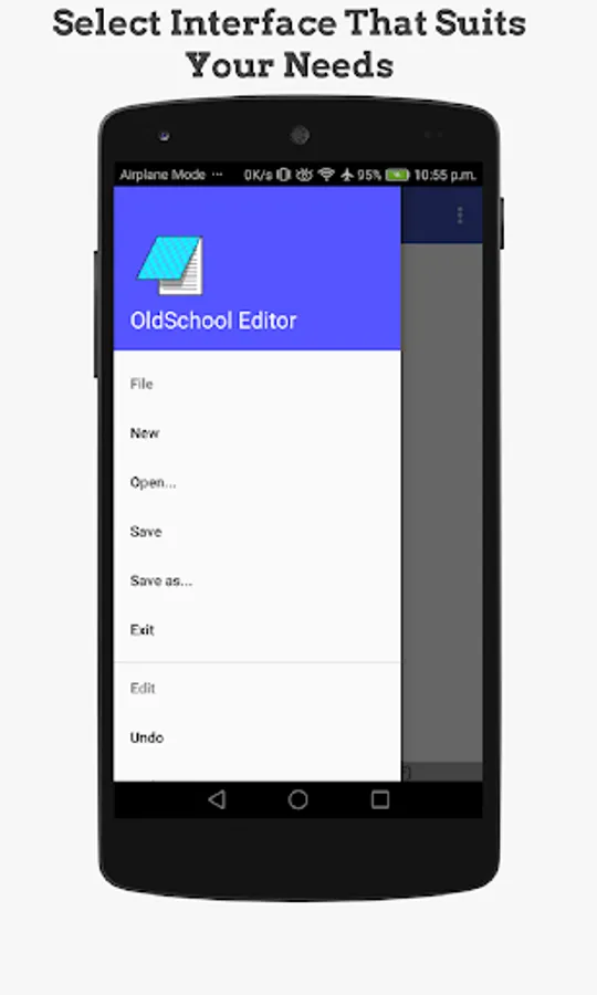 OldSchool Editor is text editor has a simple, powerful, intuitive and nostalgic interface that gives feel of working on desktop. OldSchool Editor can be used as standard editor for editing any kind of text files.