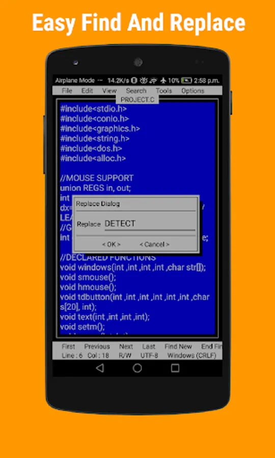 ★ Supports Find & Replace, line jumping and regular expression search.