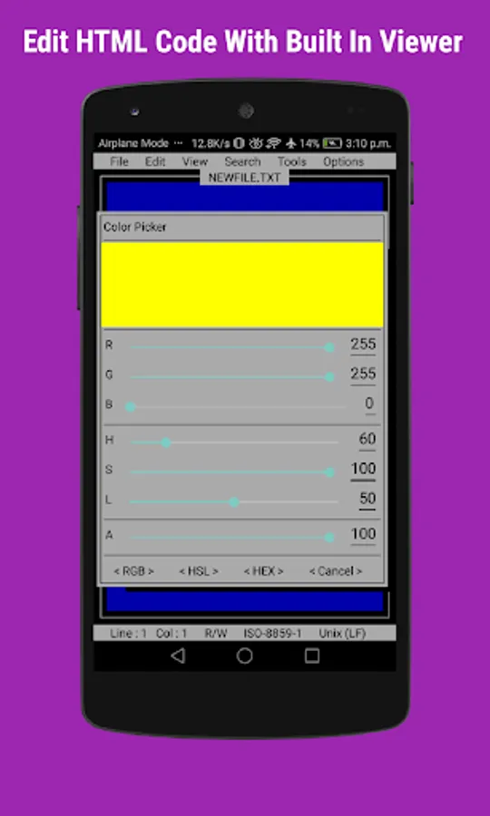 ★ Built-in color picker for getting color codes in different format such as RGB, HSL and HEX.