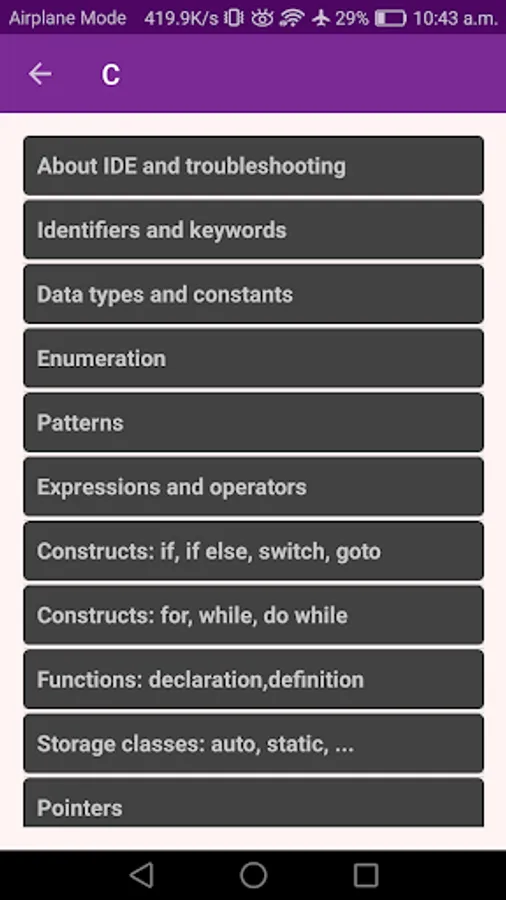 This application is for a student who is studying in school or university or any one who wants to explore different programming languages and want a quick revision of concepts.
