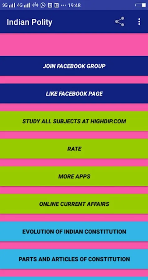 The app has very friendly and simple user interface to help you understand and learn Indian Polity GK in an effective way.