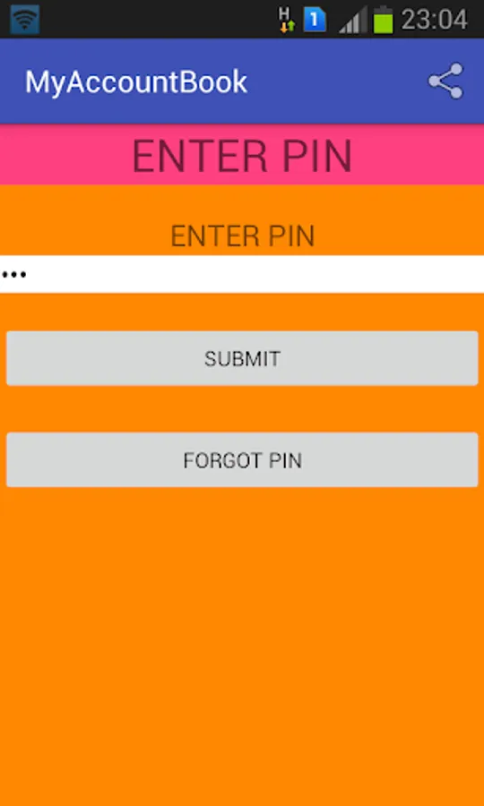 When you install My Account book you will be directed to Set Pin page where you need to set login pin along with pin recovery question and answer. Pin recovery question and answer helps you regain your pin in case you forget it.