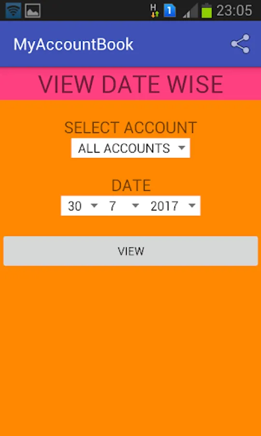 3. VIEW - This button allows you to view all your entered expenses or income. Just choose the required account and all the data related to that account will be displayed.