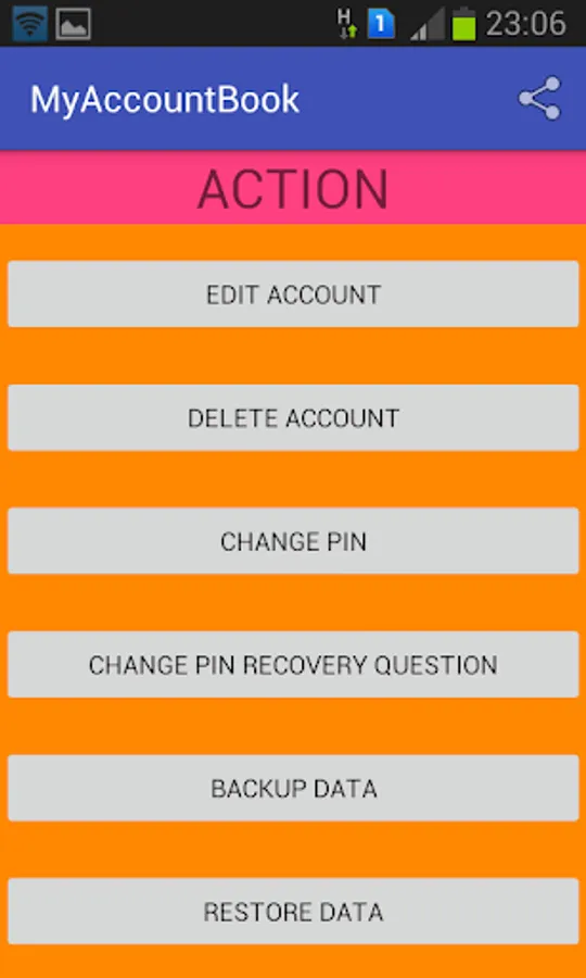 9. DELETE ACCOUNT - My Account Book acts as a diary and lets you delete any account that you have created by pressing the DELETE ACCOUNT button.