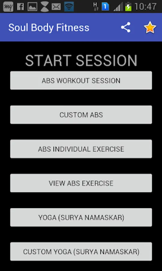 Soul n Body Fitness is a complete body workout app for you having aerobics, abs workout and yoga. It has a collection of various exercises that can help you keeping your body fit. The interactive structure of a app will make you feel live with the app. All exercises and sessions in the app can be customized according to your requirement and physical fitness. The exercise/sessions are designed to meet the needs of people of all age groups. The app provides you with the following exercises/sessions.