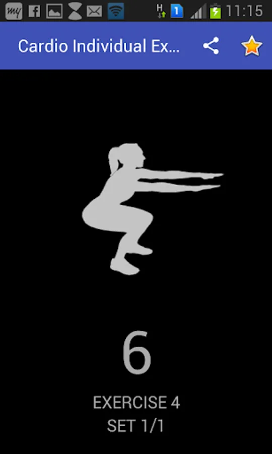 e. Individual exercise - This mode allows you to choose any one cardio workout exercise if all exercises in cardio workout set does not suit the requirement of your body.