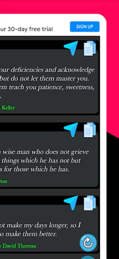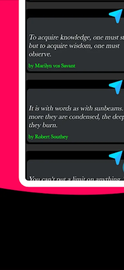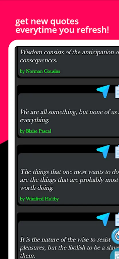 get random quotes every time you refresh the page you can copy Quotes and also can share them directly to instagram facebook or whatsapp ,these quotes always keeps you motivated ,you will get quotes of famous personalities with the help of this very amazing app such as issac newton ,pablo picasso, narendra modi, aryabhatta ,buddha ,dheeru bhai ambani and many more
