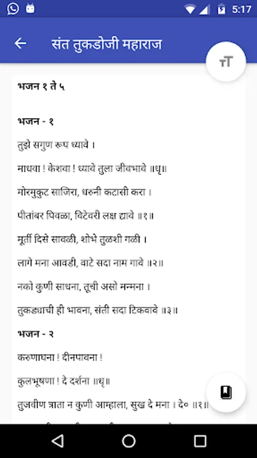 This app contains literature of Marathi sants like abhang, bharud, ovi geete (ovya), gaulan, bhakti geete, gatha, palana (barase) etc.