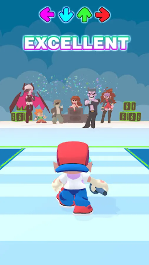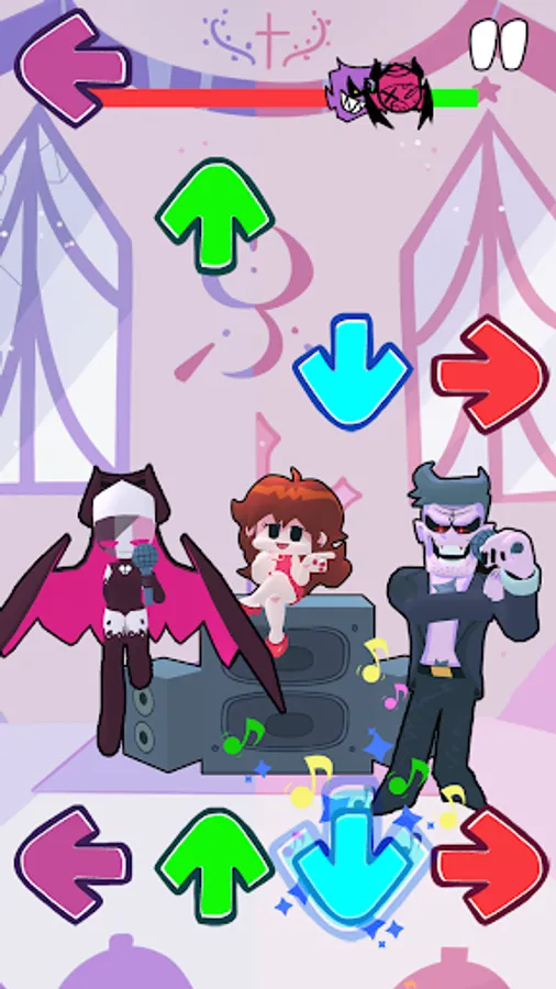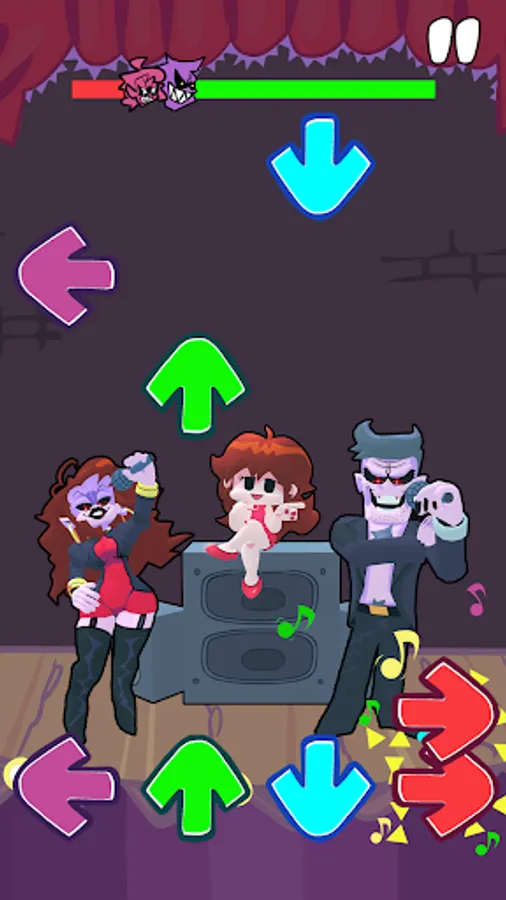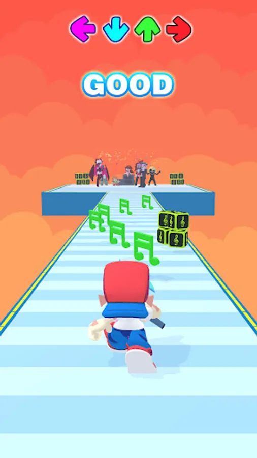 Try to run through the challenges and grab all the music notes. Then tap the arrow keys when they perfectly match to get the highest score point and beat FNF enemies like Tricky, Sonic, Nonsense, Garcello, Bob, Mat,...