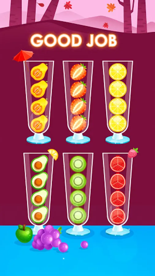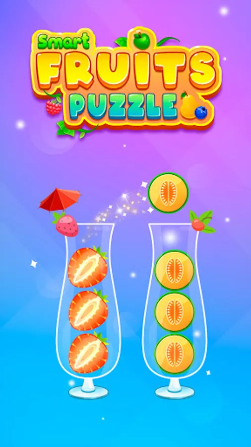 Smart Fruits Puzzle is a fun and addictive puzzle game! Try to sort the fruits in the glasses until all fruits in the same glass to make new juice. A challenging yet relaxing game to exercise your brain!