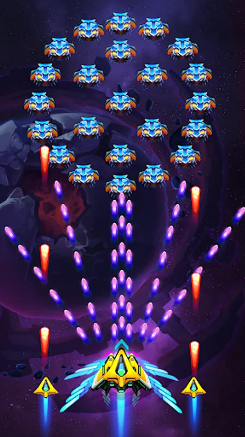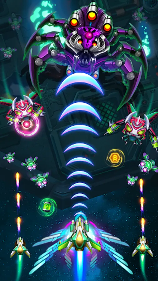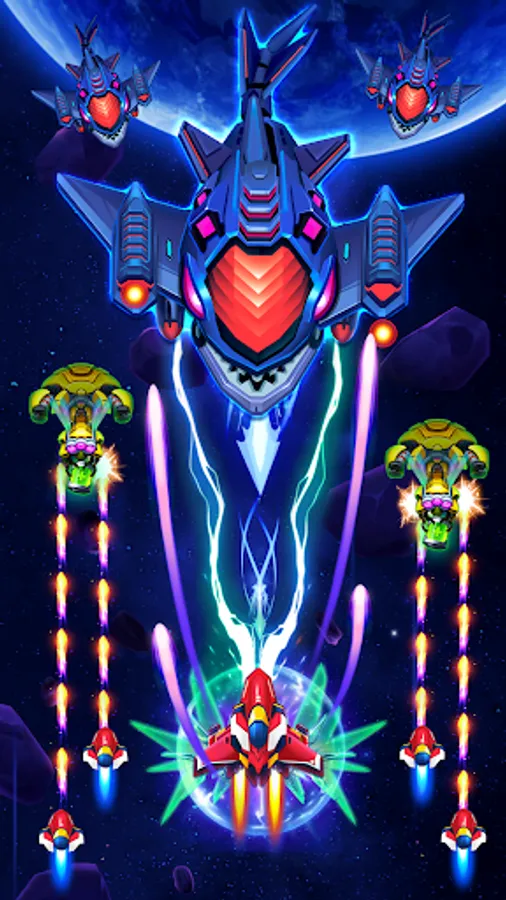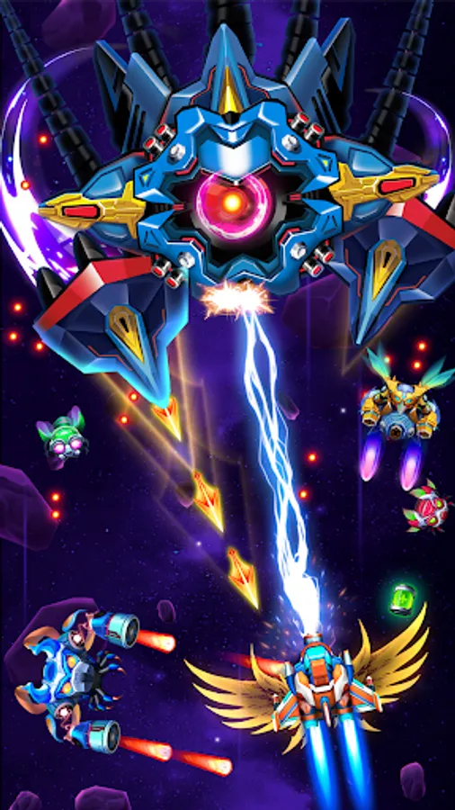 Collect coins and items to upgrade or evolve your spaceship to fight with giant enemies.
