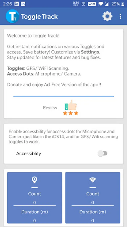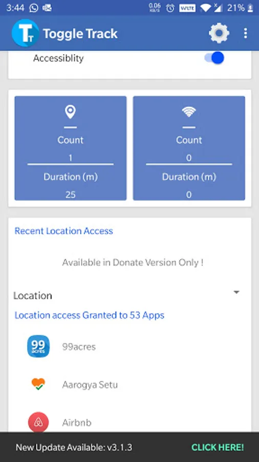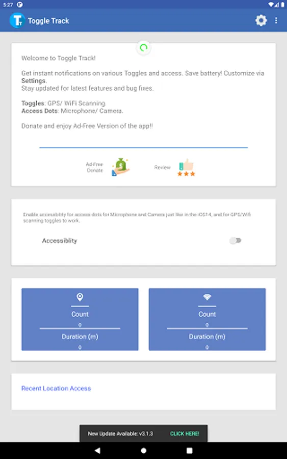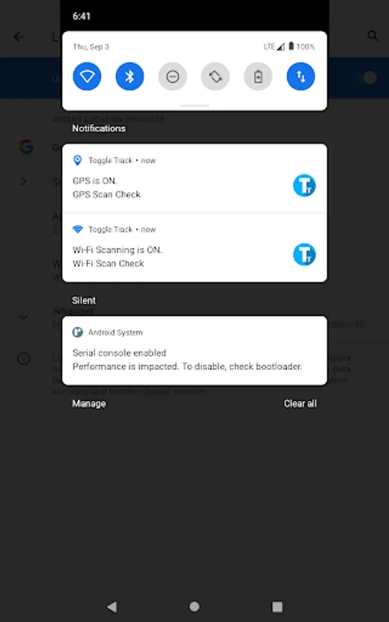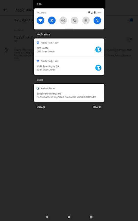 Tired of apps which use GPS and WiFi Scanning, and leave it ON. Toggle Track will notify you if WiFi scanning is switched ON by any app.