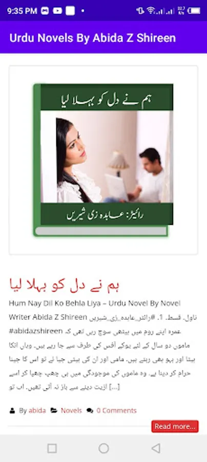 A collection of urdu novels by Abida Z Shireen is available to browse on the App. Feel free to enjoy and don’t forget to have a great time.