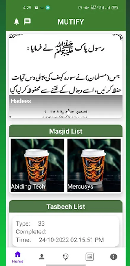 Mutify is developed to get rid of the ringing mobile phones at mosques.It offers the the feature to silent the mobile device automatically within the boundary walls of mosques & turns to previous ringtone state on goes out from the mosque boundary. it requires a WiFi device to be registered by "MUTIFY".