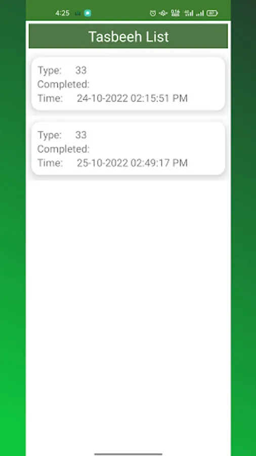-List of completed Tasbeeh