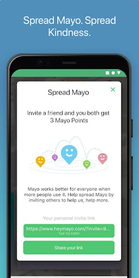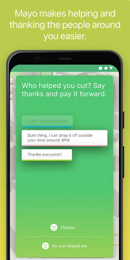Meet Mayo, the first communication app that enables people to signal their need or offer for small, immediate help to anyone nearby. No sign-up required.