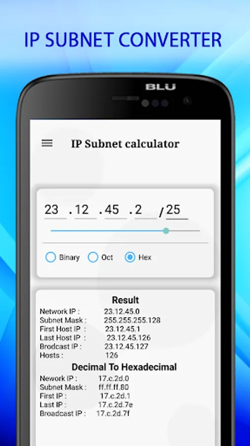 » All the above information can be converted to hexadecimal, octal, and binary form by using the functionality of the IP subnet converter in app.