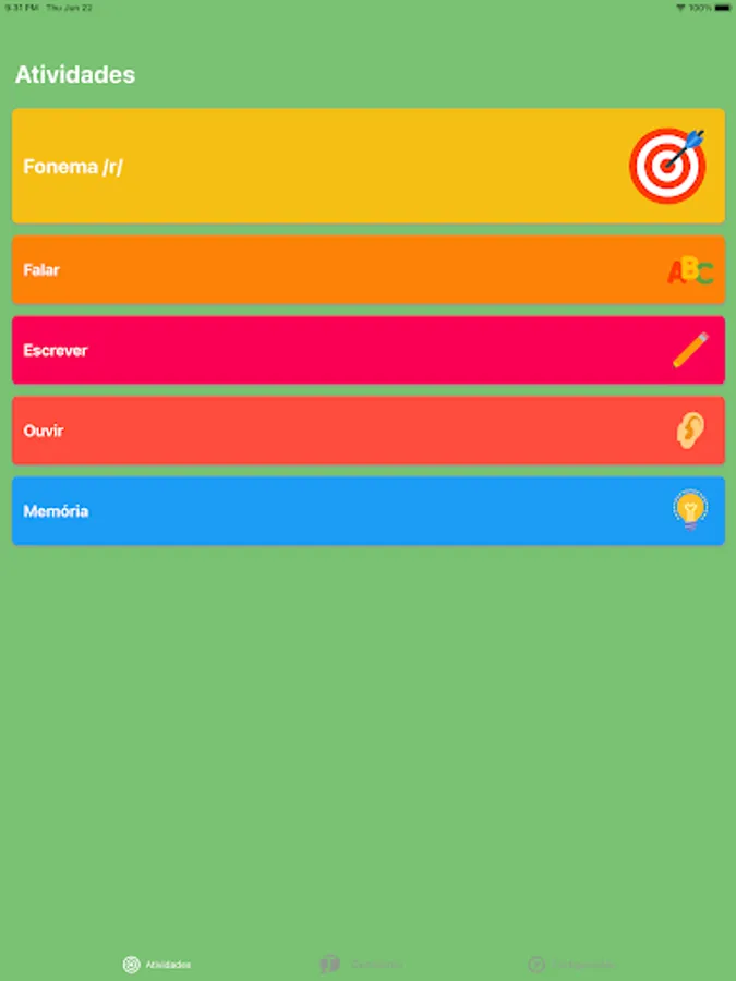 In the GameFono© App, you will find activities with ALL Brazilian Portuguese phonemes. In addition, multisensory cues will facilitate the training of speech sounds, complementary free subjects. All this, WITHOUT MONTHLY FEES!