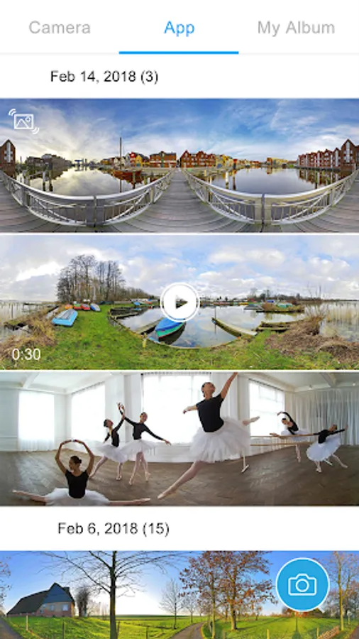 - Create and watch 360 videos in multiple formats, pictures, videos, time lapses and live broadcasts