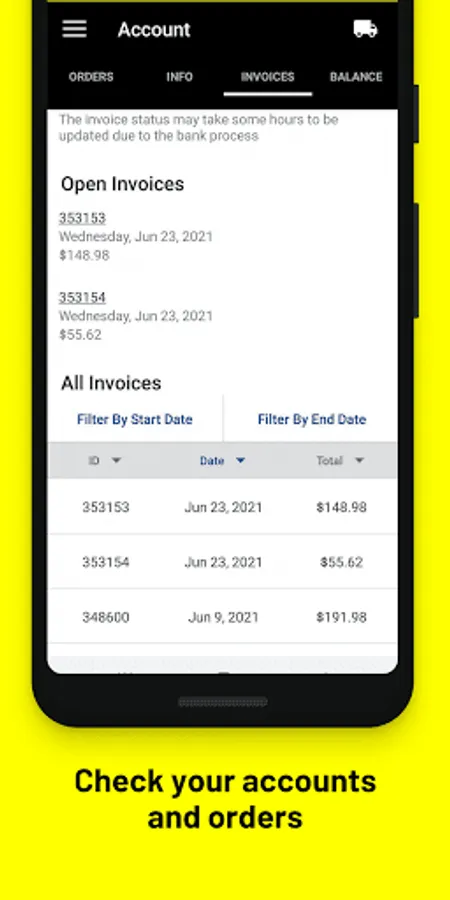 - Reorder past purchases from invoices