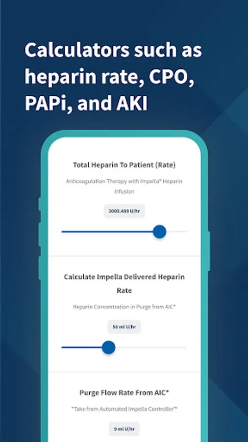 - Calculators such as heparin rate, CPO, PAPi and AKI