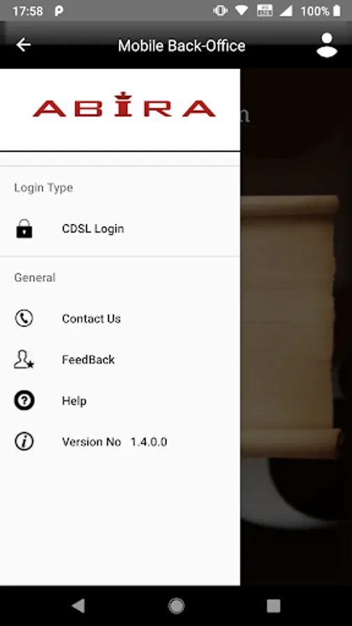 This application enables clients registered with Abira to connect with Back Office to track their account details for Equity, Derivatives, Commodities and Currency markets.