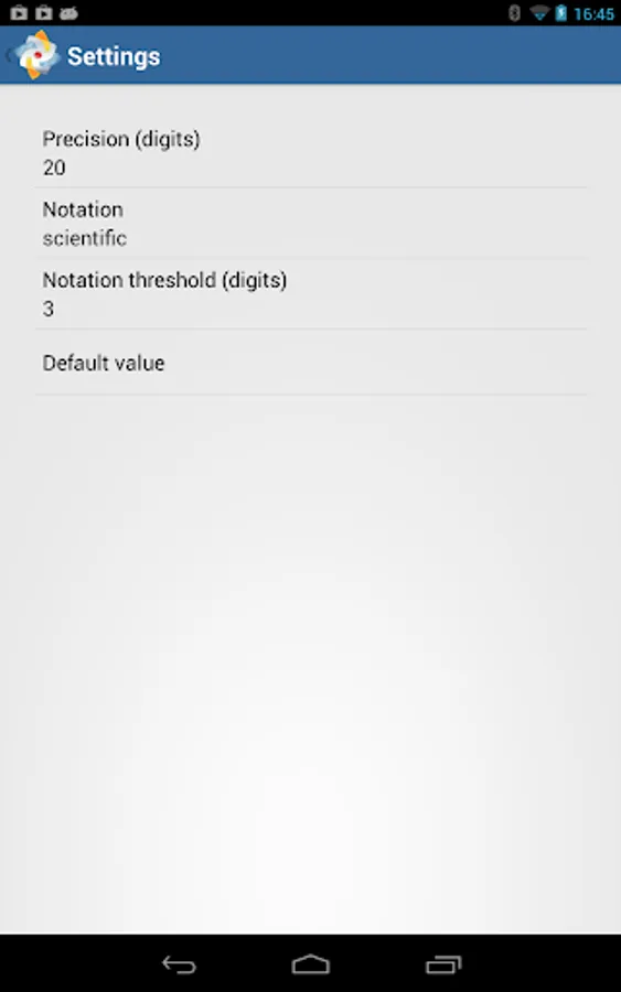 Notation: what notation to use for results: normal (no 10-exponent), scientific (10-exponent) or engineering (10-exponent in 1000s)