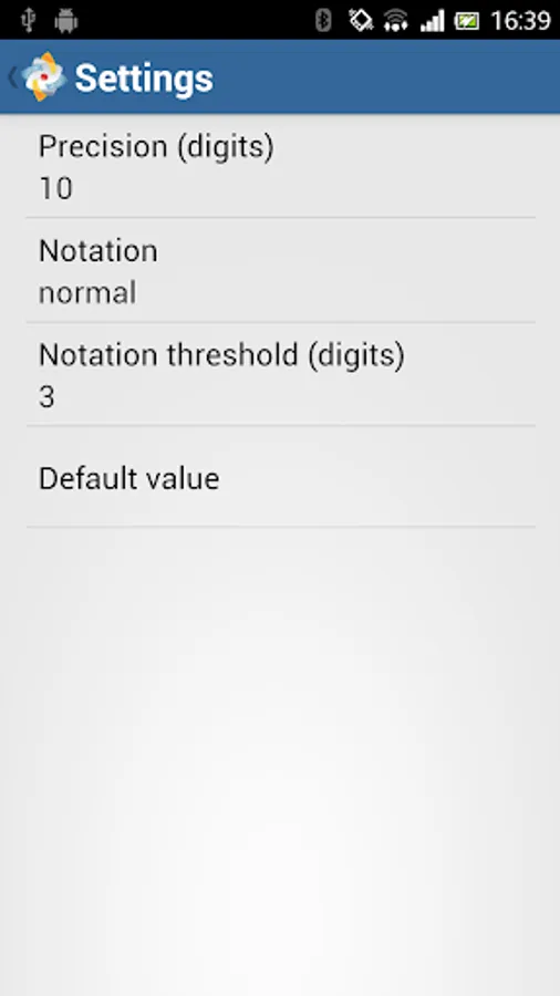Precision: how many digits should be shown after the decimal, whatever the notation; the result will be rounded at that point; practical maximum is 16