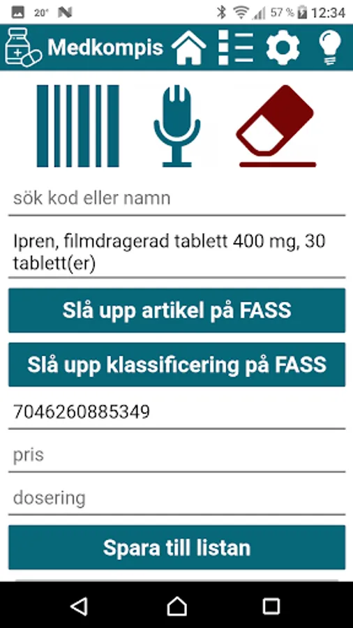 - Read the EAN code on the packaging or can. Alternatively, speak or type the name of your medication and look up your variant in the list.