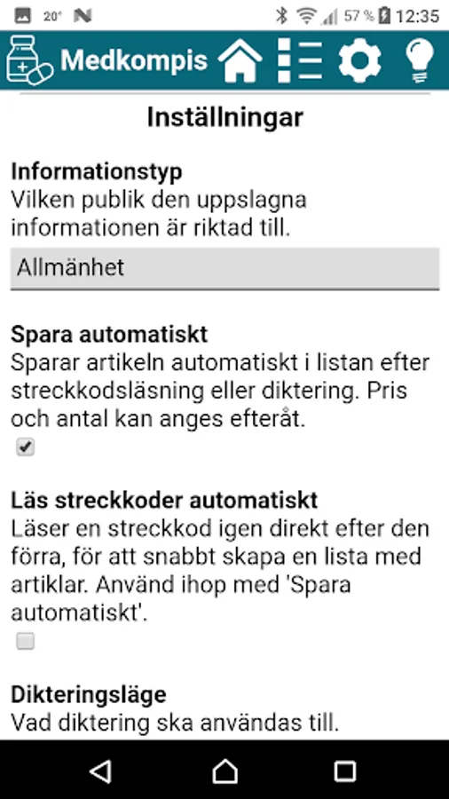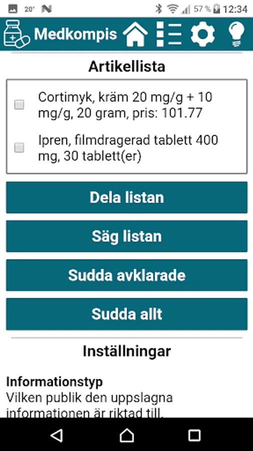 Product information can be saved to a list e.g. price and dosage. The list also functions as a memo list that can be dictated. Individual articles can be clearly marked and deleted. The list can also be erased in its entirety, and can be shared via the phone's functions.