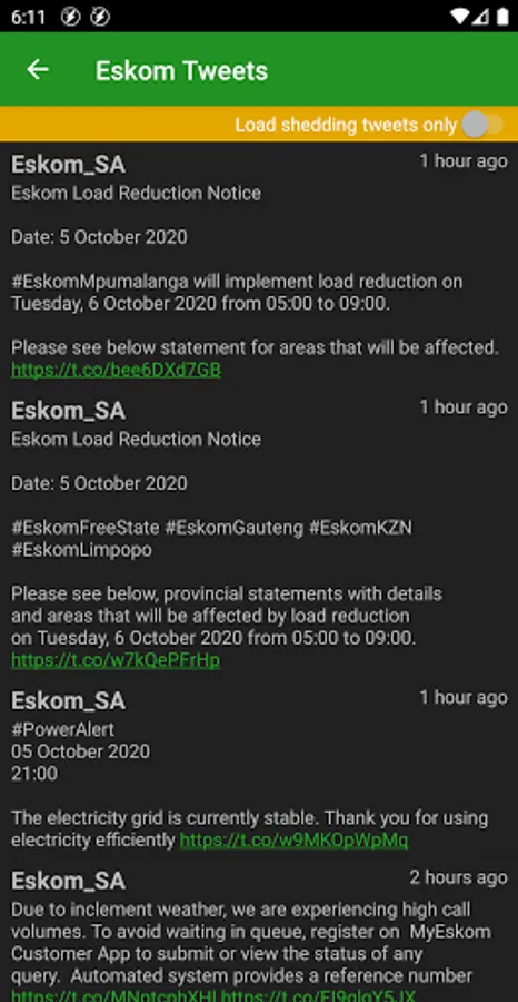 Abisoft is in no way affiliated with or a representative of Eskom or any of the municipalities. All schedules and load shedding status updates are obtained from the Eskom website (loadshedding.eskom.co.za).
