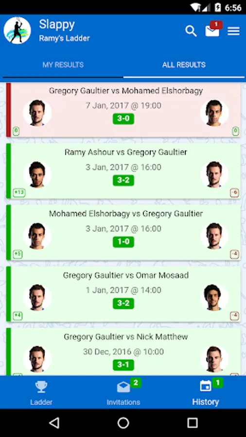 Slappy is perfect for managing club ladders, and can also be used for personal social ladders.