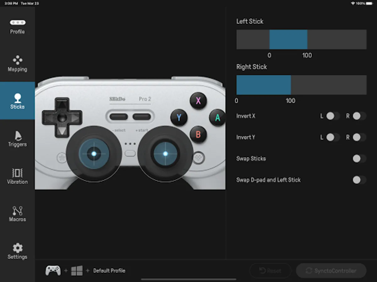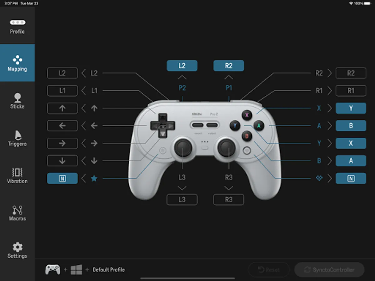 8BitDo Ultimate Software gives you elite control over every piece of your controller: customize button mapping, adjust stick & trigger sensitivity, vibration power control and create macros.