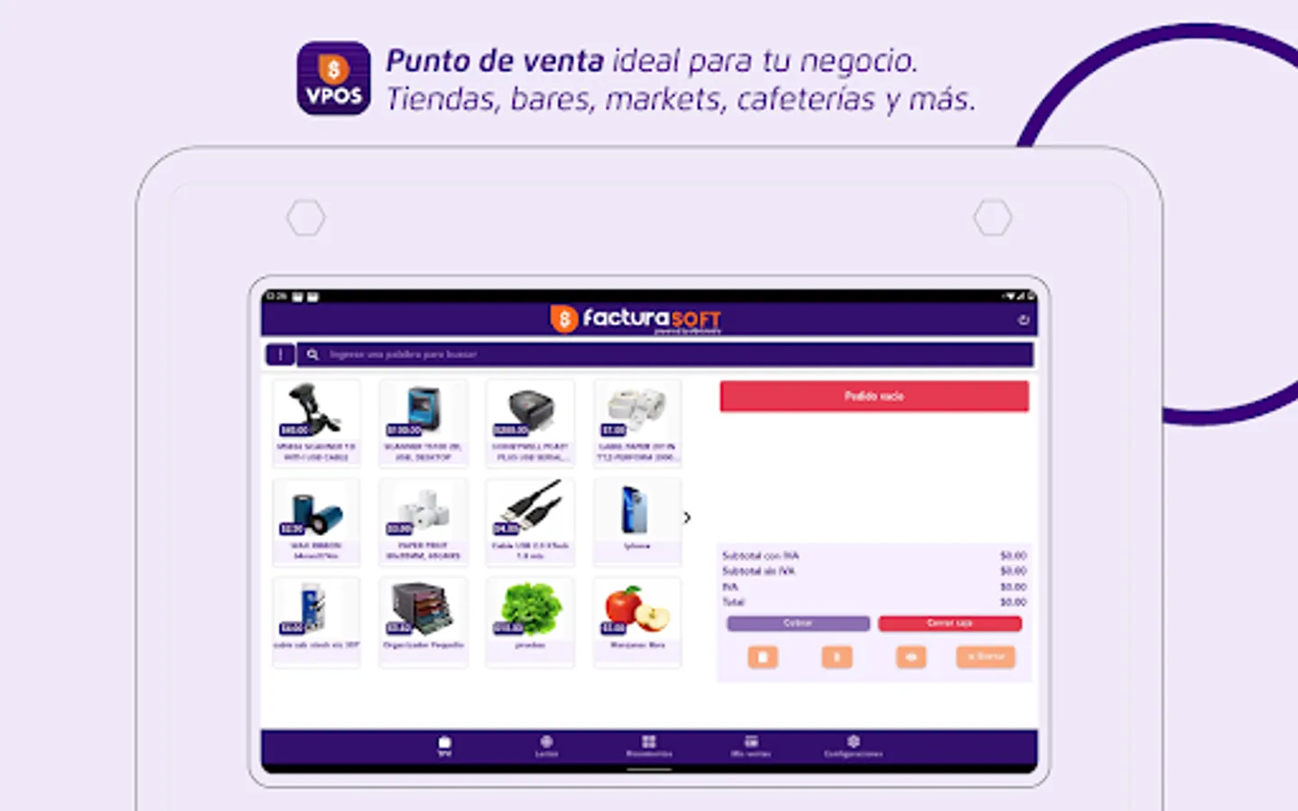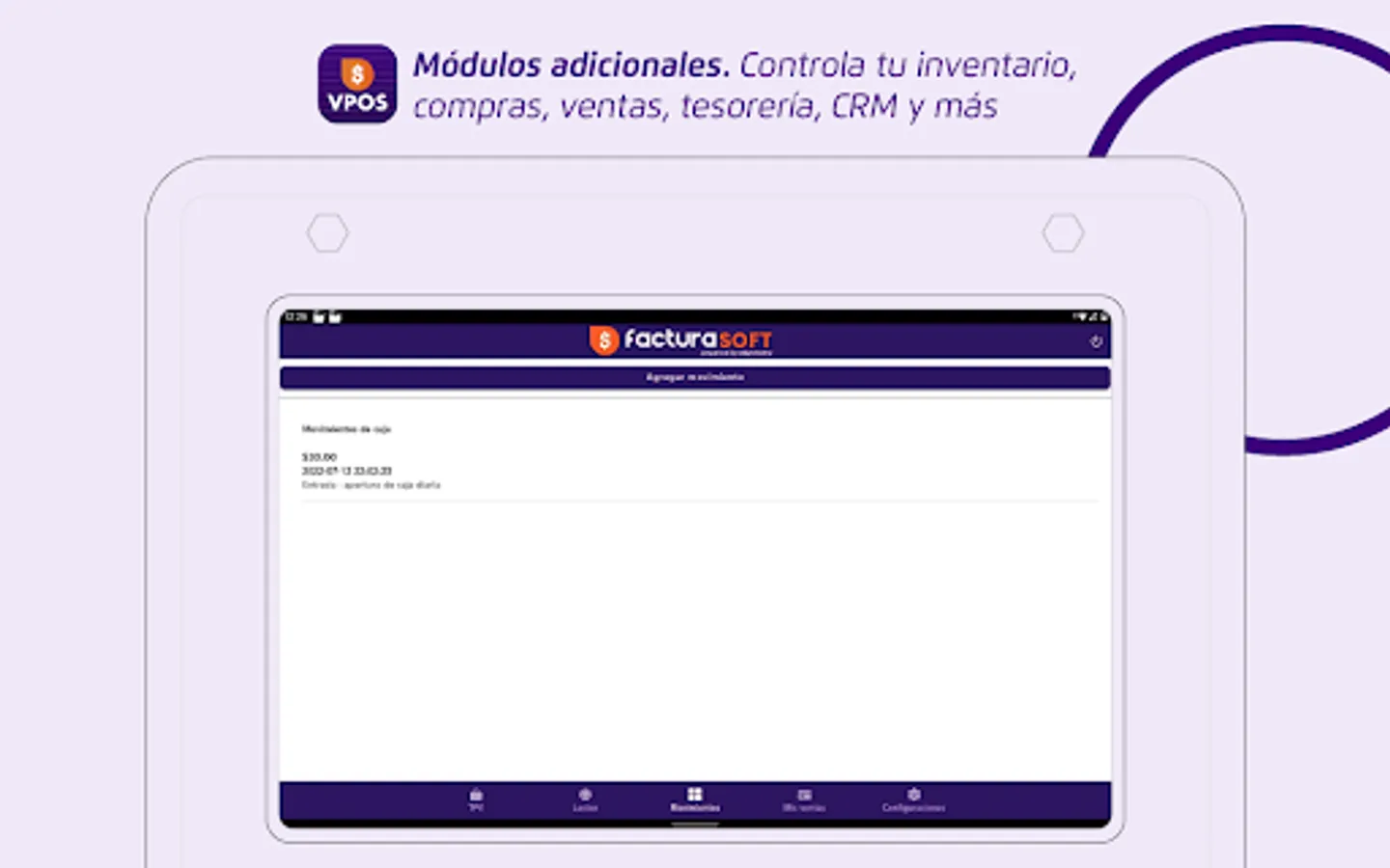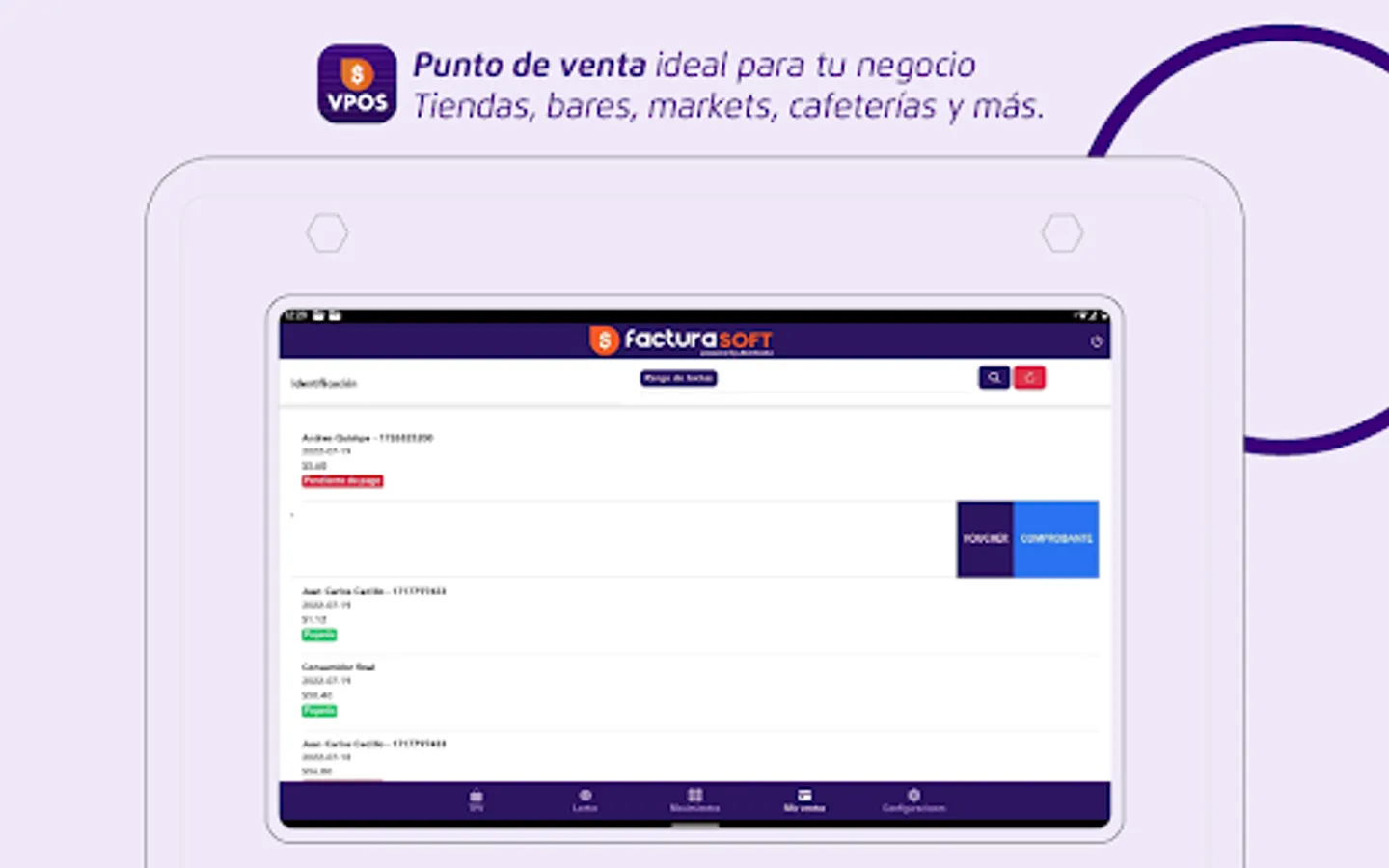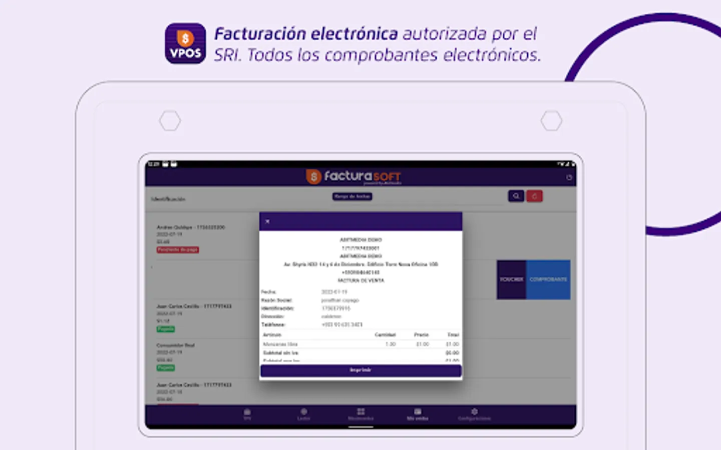 FacturaSoft VPOS is a virtual point of sale for any type of business, it has a web environment and a mobile application for business management. It has Inventory modules, accounts payable, accounts receivable, point of sale terminal, collections with credit cards, debit and electronic invoicing authorized by the SRI.