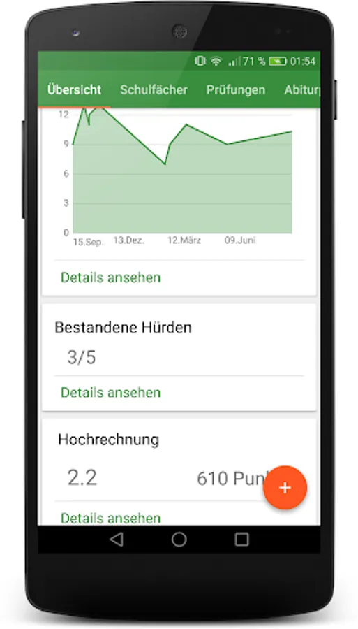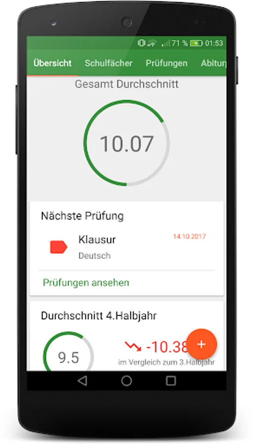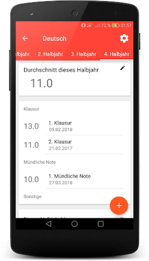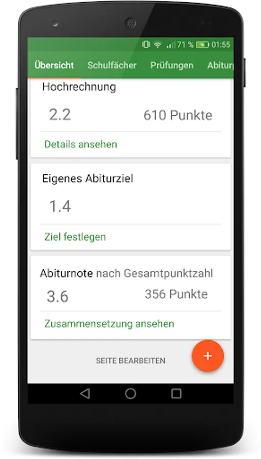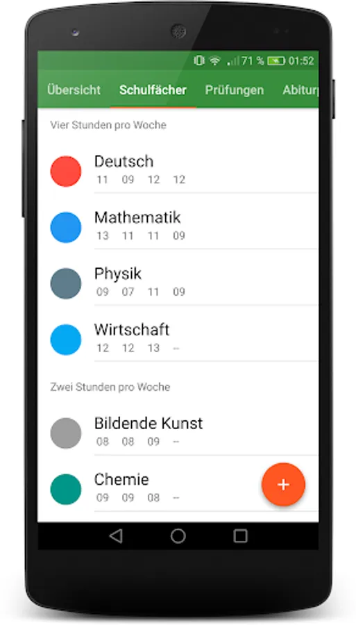 With the Abi-Planner BW you can quickly and easily document your grades to have an overview of your current grade average in the individual school subjects and in total.